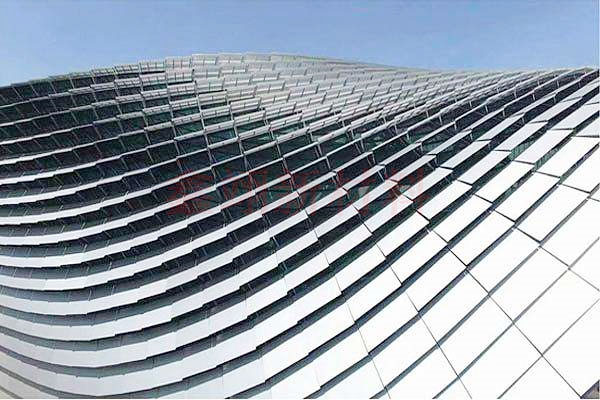 氧化鋁單板主要是采用了陽(yáng)極氧化工藝制作的鋁單板,表面附有一層氧化膜,使用壽命長(zhǎng)久,耐候性強(qiáng)。