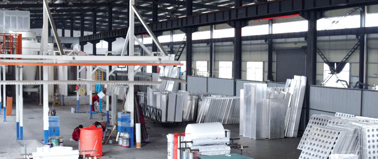 富騰建材擁有6個分廠,包括鈑金、噴涂、木紋轉印等生產線,年產能200萬m2。